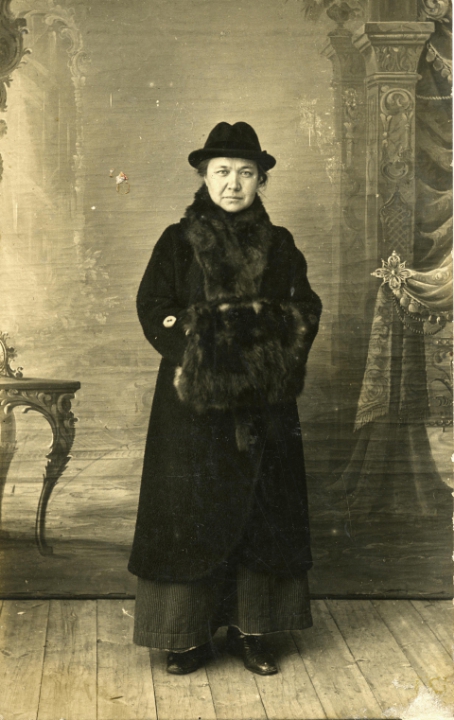 Наталия Павловна Дурдина с матерью и неизвестными женщинами у лестницы перед домом