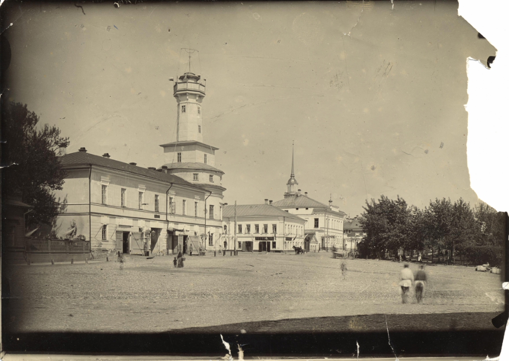 Рыбинск. Вид на старую пожарную каланчу и Бульварную улицу с Театральной площади