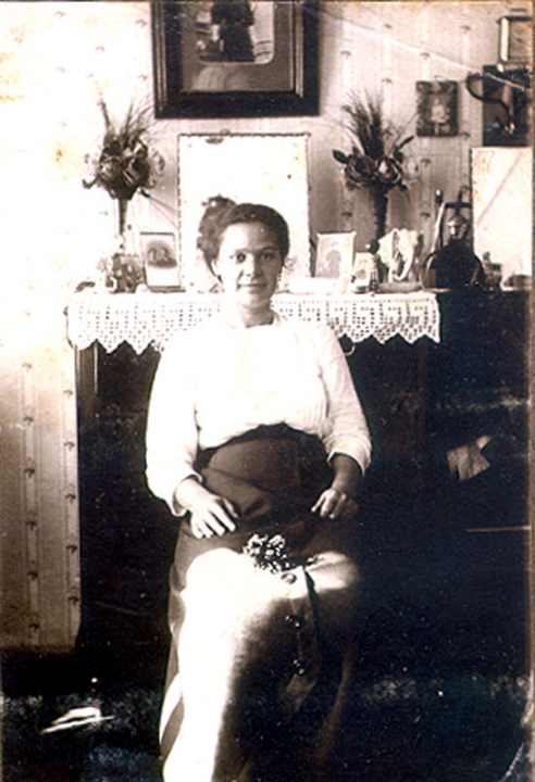 Наталия Павловна Дурдина на лестнице перед домом с неизвестными женщинами