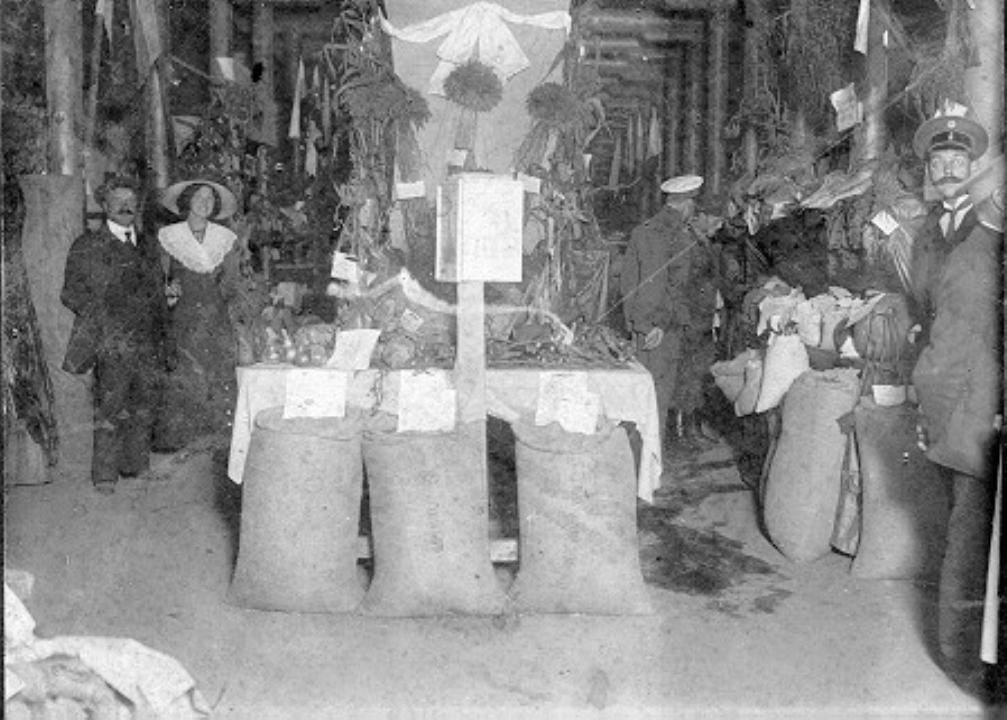 Группа лиц в павильоне Мологской Уездной сельско-хозяйственной и кустарной выставки 1912 года