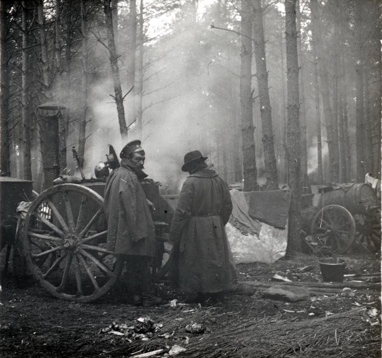 Военные в лесу у орудия