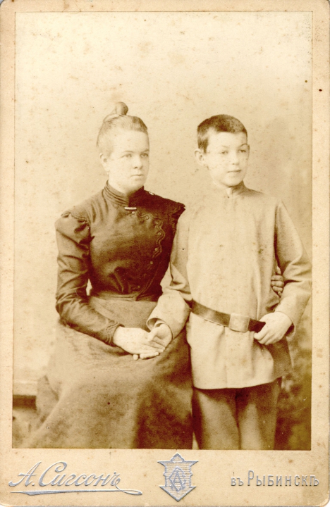 Наталия Павловна Дурдина с матерью и неизвестными женщинами у лестницы перед домом