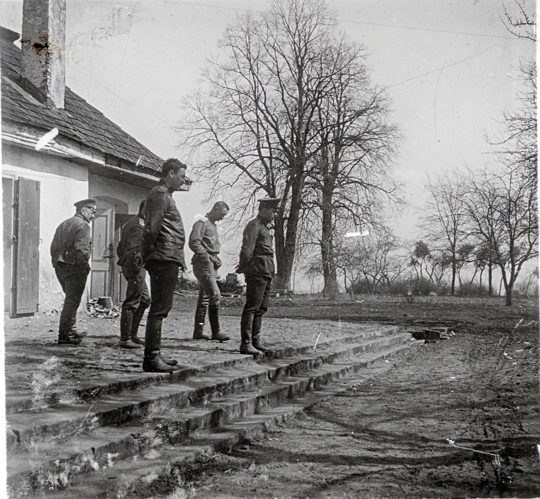 Наталия Павловна Дурдина с матерью и неизвестными женщинами у лестницы перед домом