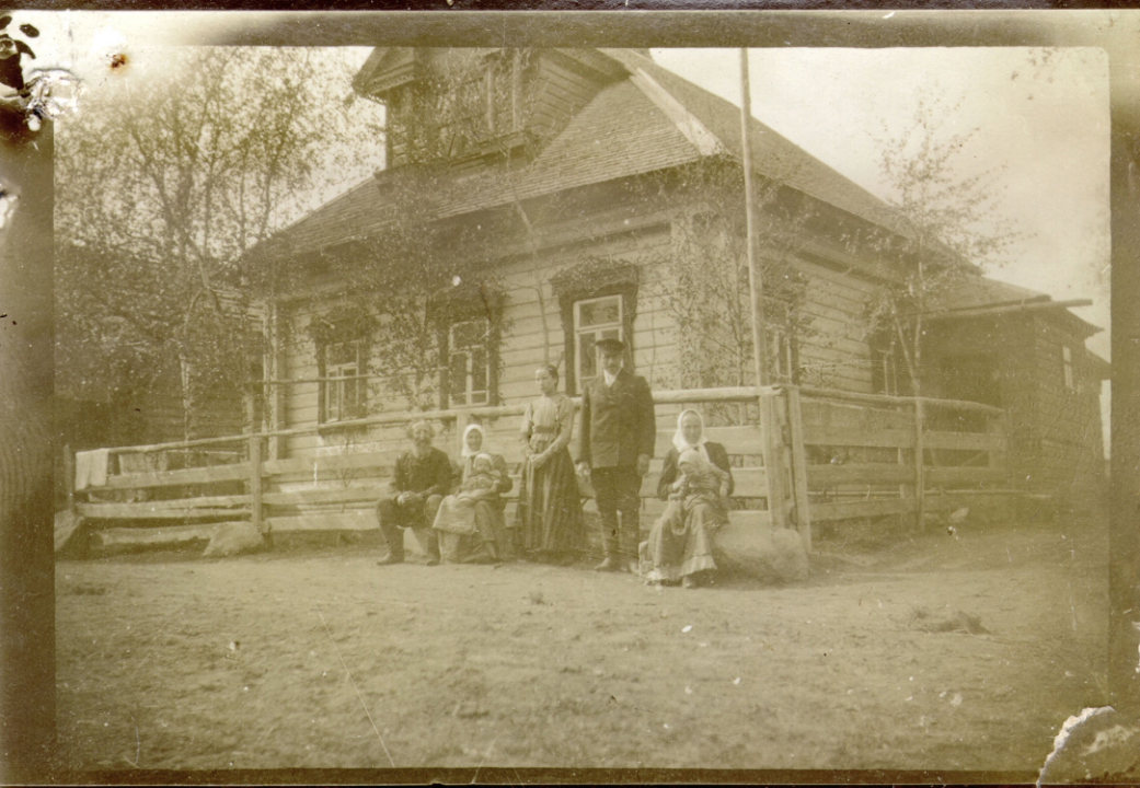 Наталия Павловна Дурдина с матерью и неизвестными женщинами у лестницы перед домом