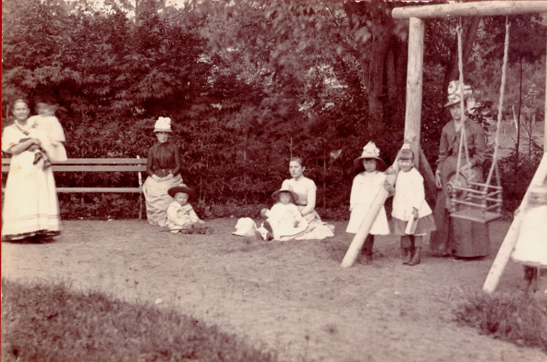Дети Галл с гувернантками в саду