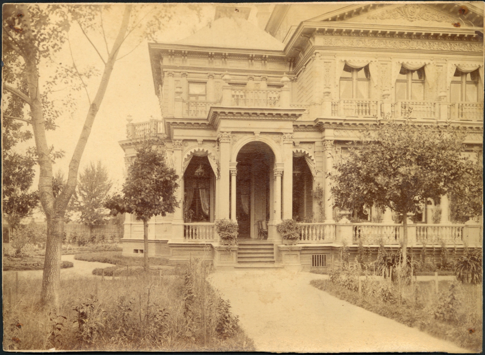 Наталия Павловна Дурдина с матерью и неизвестными женщинами у лестницы перед домом
