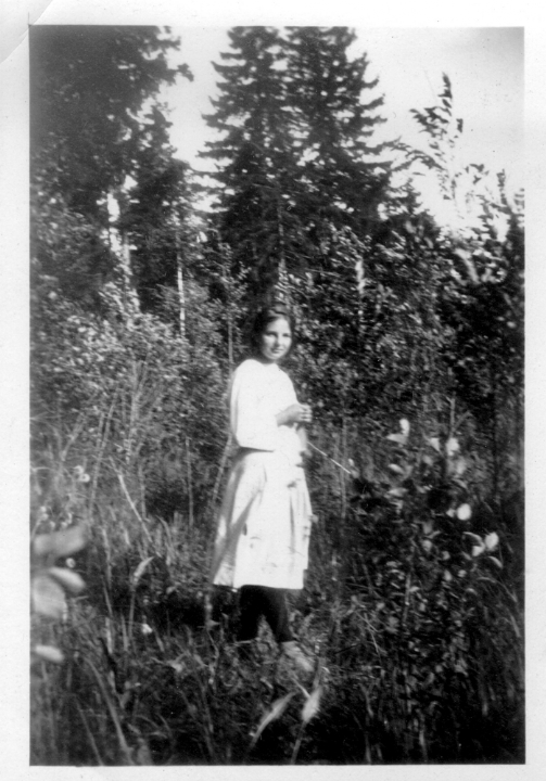 Наталия Павловна Дурдина на лестнице перед домом с неизвестными женщинами