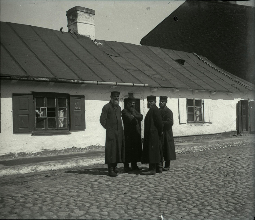 Четверо мужчин на фоне деревянного дома