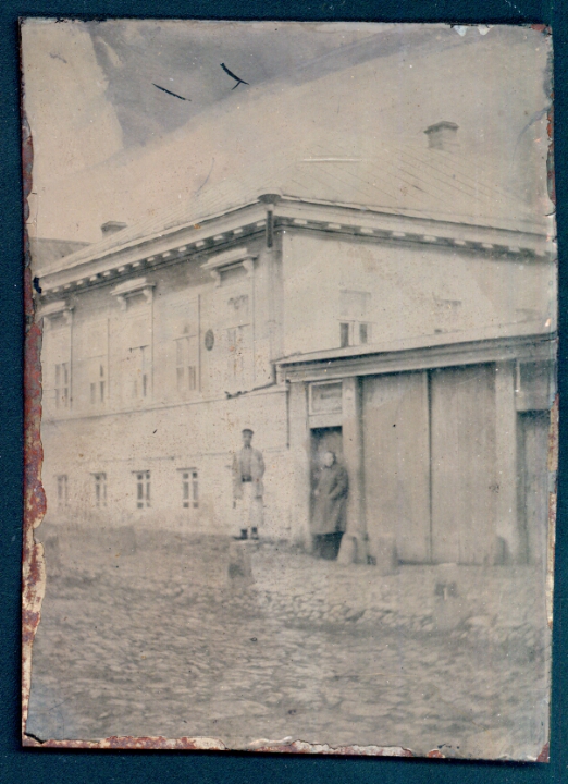 Наталия Павловна Дурдина с матерью и неизвестными женщинами у лестницы перед домом