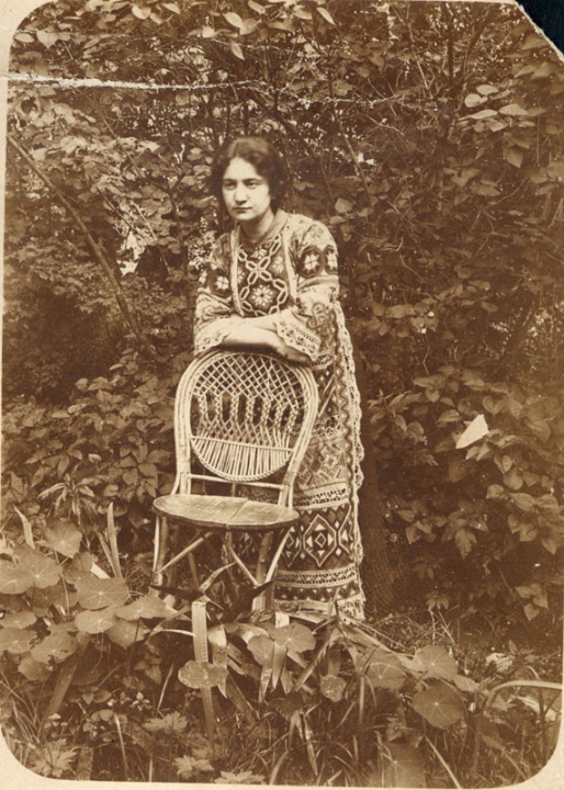 Наталия Павловна Дурдина с матерью и неизвестными женщинами у лестницы перед домом