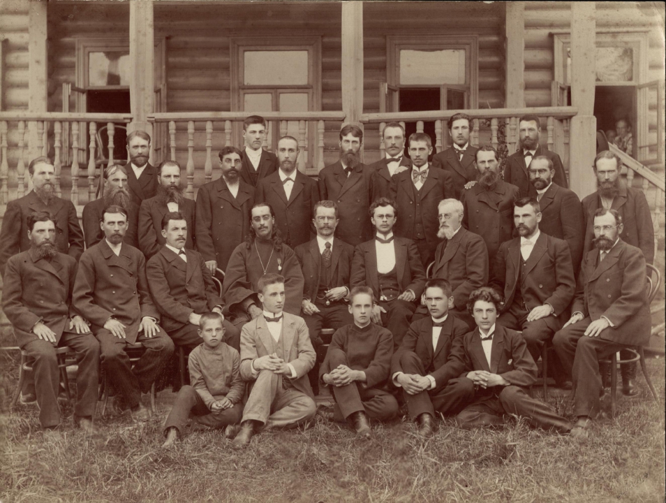 Наталия Павловна Дурдина с матерью и неизвестными женщинами у лестницы перед домом