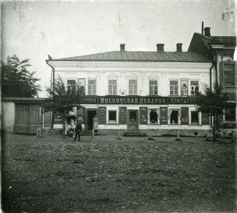 Наталия Павловна Дурдина с матерью и неизвестными женщинами у лестницы перед домом