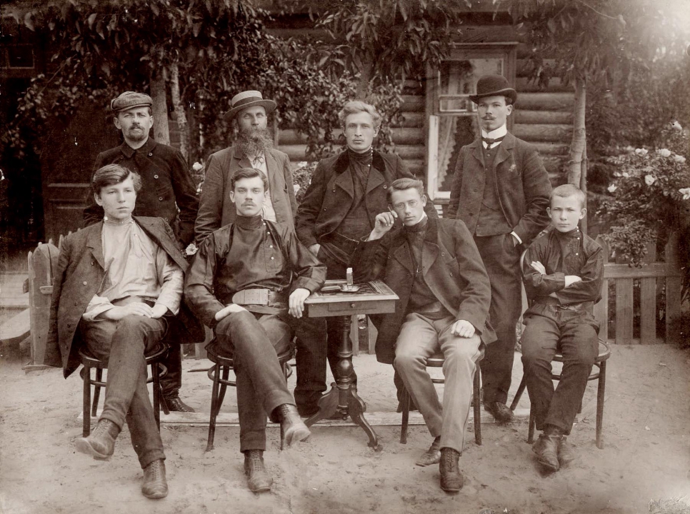 Служащие ф-ки т-ва Кузнецова у общежития.