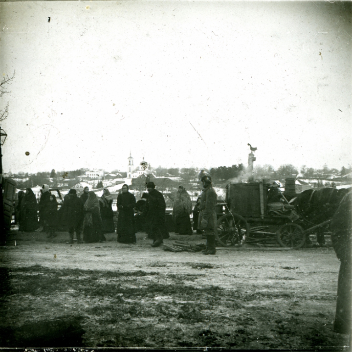 Наталия Павловна Дурдина с матерью и неизвестными женщинами у лестницы перед домом