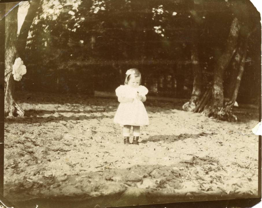 Наталия Павловна Дурдина с матерью и неизвестными женщинами у лестницы перед домом