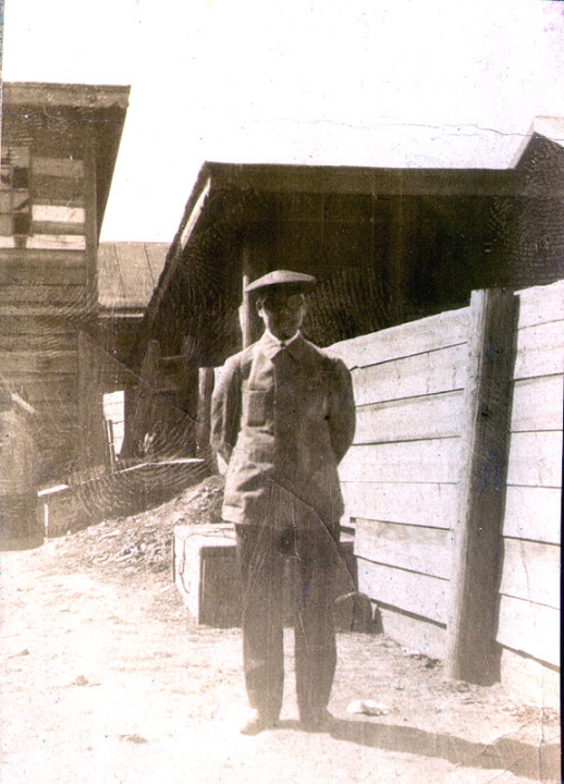 Борис Масленников на фоне хозяйственных построек.