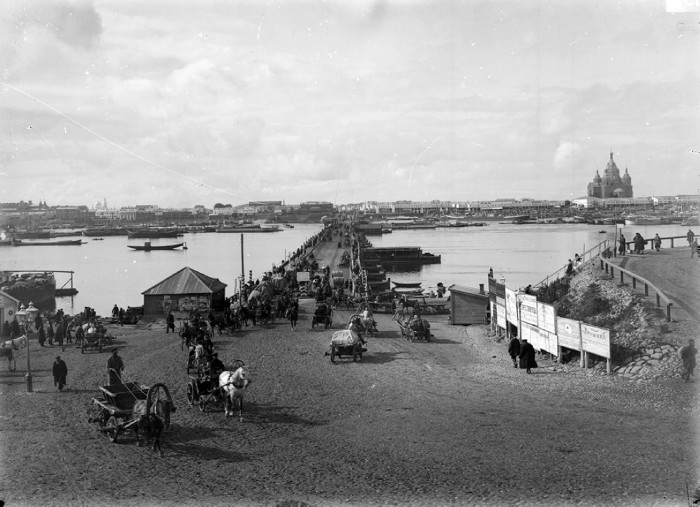 Общий вид на плашкоутный мост. к. XIX – н. ХХ вв. г. Нижний Новгород