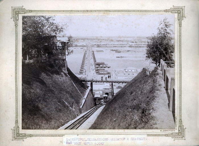 Вид на Похвалинский элеватор и плашкоутный мост. к. XIX в. г. Нижний Новгород