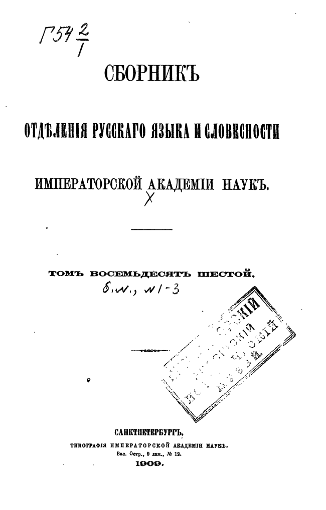 Сборник отделения русского языка и словесности Императорской Академии наук. Выпуск 86