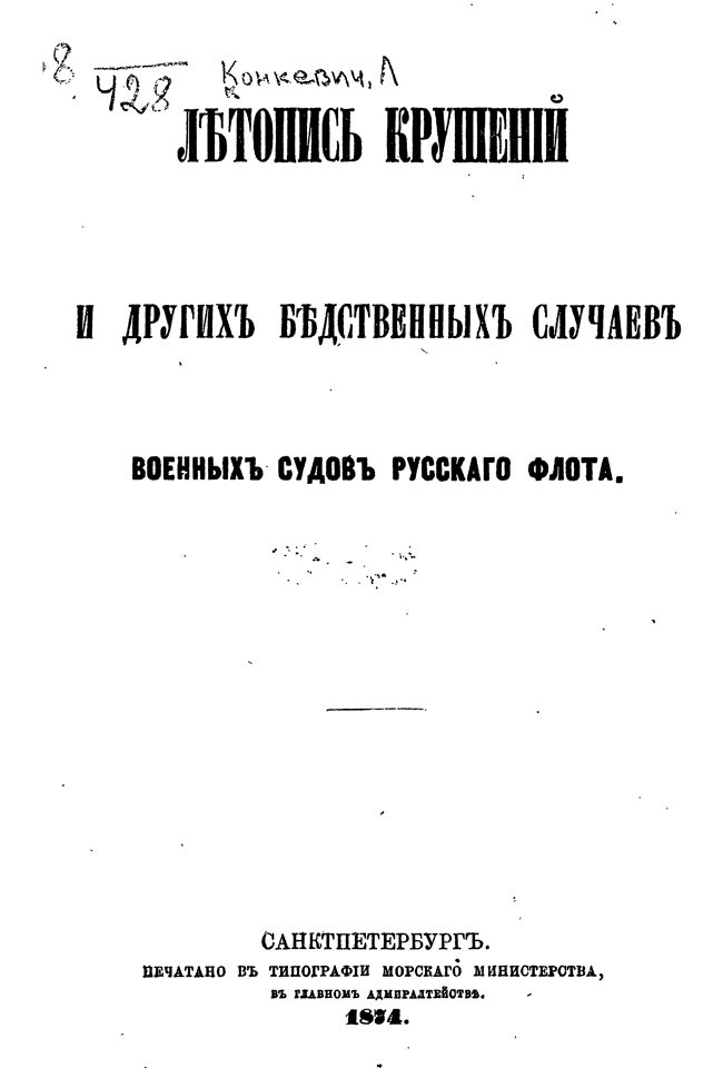 «Летопись крушений и других бедственных случаев военных судов русского флота», составленная лейтенантом Л. Г. Конкевичем, представляет собой описания крушений и других бедствий военных судов. Она продолжает работу А. П. Соколова «Летопись крушений и пожаров судов русского флота от начала его по 1854 год» и носит поучительный характер. Инициированное Ученым Морским Техническим Комитетом, издание задумывалось как необходимый материал для командиров судна и эскадры. «Летопись» Конкевича обобщает опыт всех предшествовавших плавателей, находившихся в критическом положении, и может предостеречь от допущенных ими ошибок. В книге разъясняются причины бедствий и указываются неверные решения командиров.