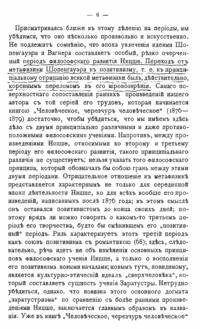 Вся философия Ницше, исходная точка которой – атеизм, а её конечный результат – отрицание человека, – это попытка преодолеть страх смерти и ответить на вопрос, стоит ли жить вообще. Автор ставит перед собой цель выяснить, как философ справился с этой задачей, и делает вывод о том, что учение Ницше, хотя во всех его произведениях чувствуется крупное философское и художественное дарование, глубина постановки философских вопросов, тонкость наблюдения и критики, богатство и яркость художественных образов, – носит на себе печать упадка философской мысли, а окончательные выводы его философии граничат с пошлостью. Это колоссальное несоответствие между затраченными силами и достигнутым результатом объясняется общим ослаблением и утомлением мысли, которое составляет характерную черту всей современной эпохи в отличие от дней высшего процветания философии, когда её одушевляла вера в разум и мысль, лежащую в основе существования.
