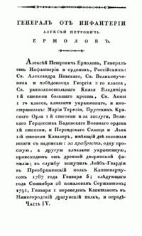 Дѣянiя россiйскихъ полководцевъ и генераловъ, ознаменовавшихъ себя, въ достопамятную войну съ Францiею, въ 1812, 1813, 1814 и 1815 годахъ. Часть четвертая