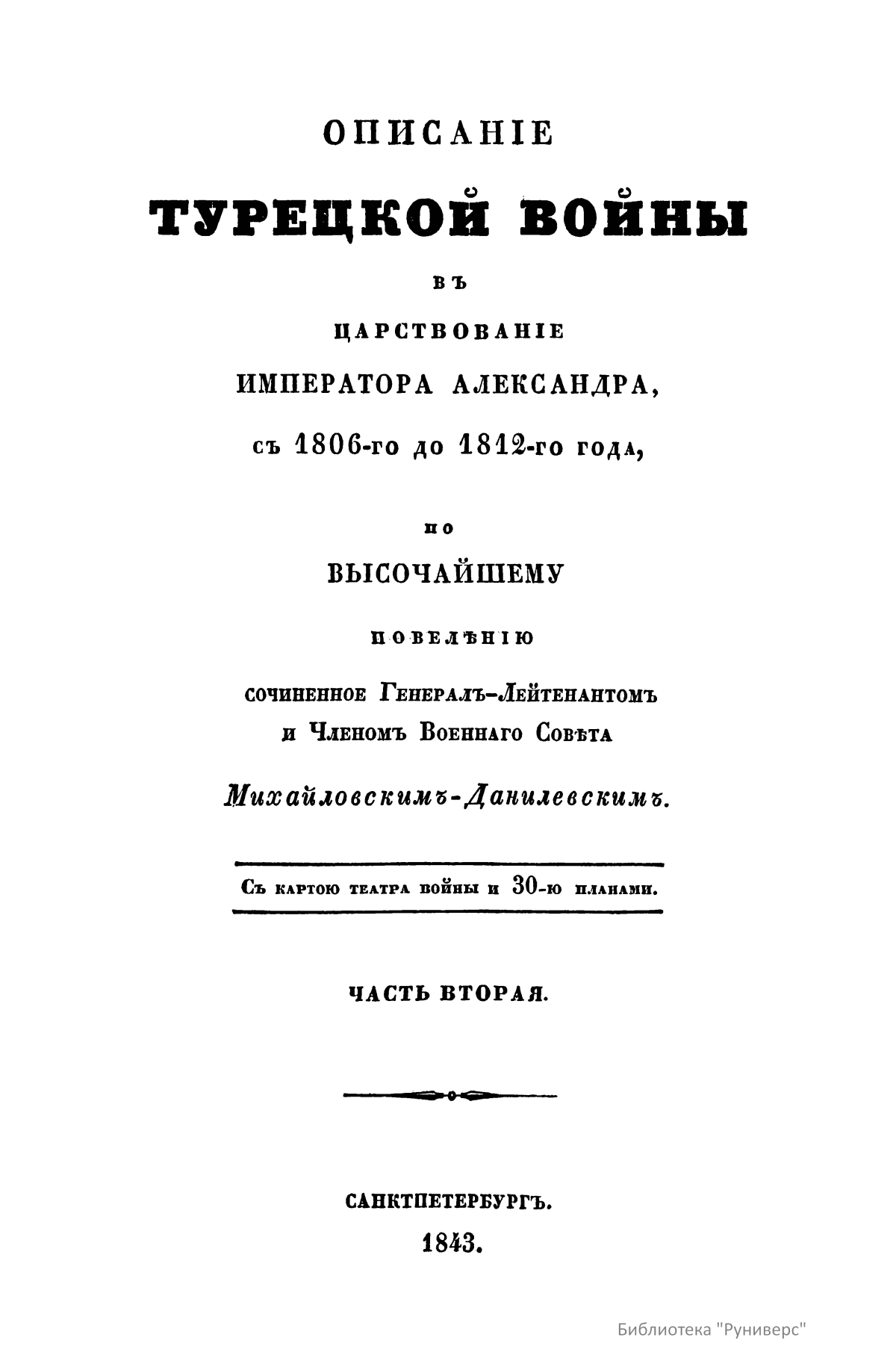 ОПИСАНІЕ ТУРЕЦКОЙ ВОЙНЫ въ ЦАРСТВОВАНІЕ ИМПЕРАТОРА АЛЕКСАНДРА, съ 1806-го до 1812-го года