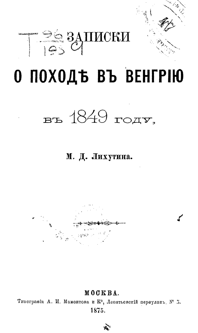 Книга известного российского военного писателя генерал-майора М.Д. Лихутина посвящена событиям, связанным с его участием в молодости в боевых действиях русских экспедиционных войск, которые были введены в Галицию и Трансильванию для помощи Австрии в подавлении восстания в Венгрии летом 1849 г. Находясь при штабе 4-го корпуса под командованием генерала от инфантерии М.И. Чеодаева в качестве офицера для особых поручений, Лихутин в своих путевых заметках подробно и живо описывает плачевное состояние общества в многонациональной империи Габсбургов, расколотой межэтническими и межконфессиональными распрями. Автор в своих мемуарах детально рассказывает о боях с участием дивизий и полков 4-го корпуса русской армии по овладению городом Дебречин (Дебрецин), который являлся в это время столицей революционной Венгрии, преследовании русскими войсками повстанческой венгерской армии Гёргея, участии в сражении под Мишкольцами и других событиях этой кампании вплоть до капитуляции революционных войск Венгрии.