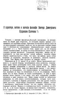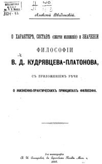 О характере, составе (сжатое изложение) и значении философии В.Д. Кудрявцева-Платонова, с приложением речи о жизненно-практических принципах философа