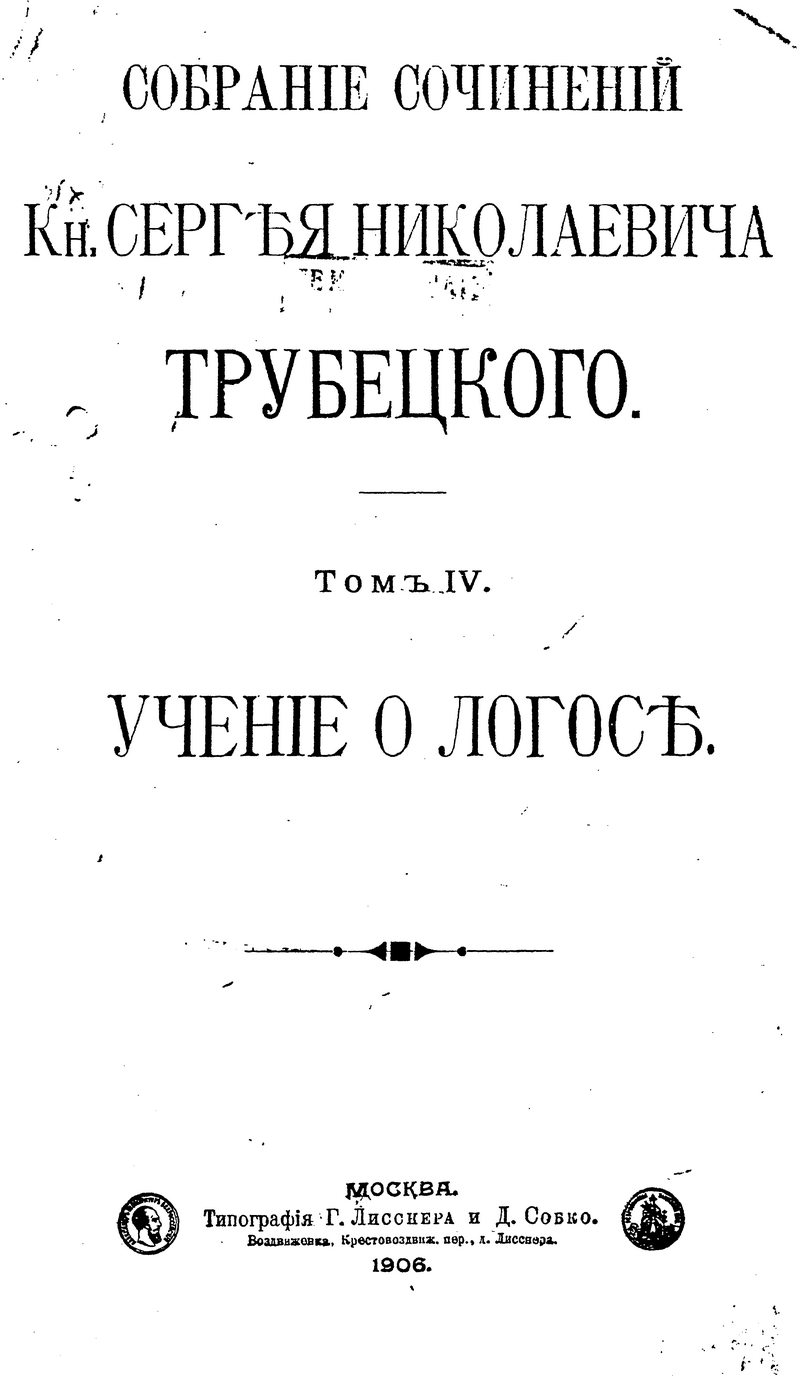 Собрание сочинений Кн. Сергея Николаевича Трубецкого. Том IV. Учение о Логосе