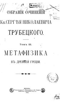 Собрание сочинений Кн. Сергея Николаевича Трубецкого. Том III. Метафизика в древней Греции