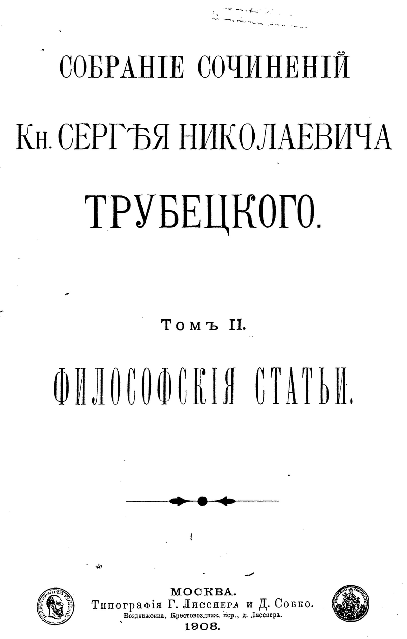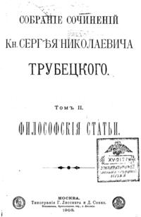 Собрание сочинений Кн. Сергея Николаевича Трубецкого. Том II. Философские статьи