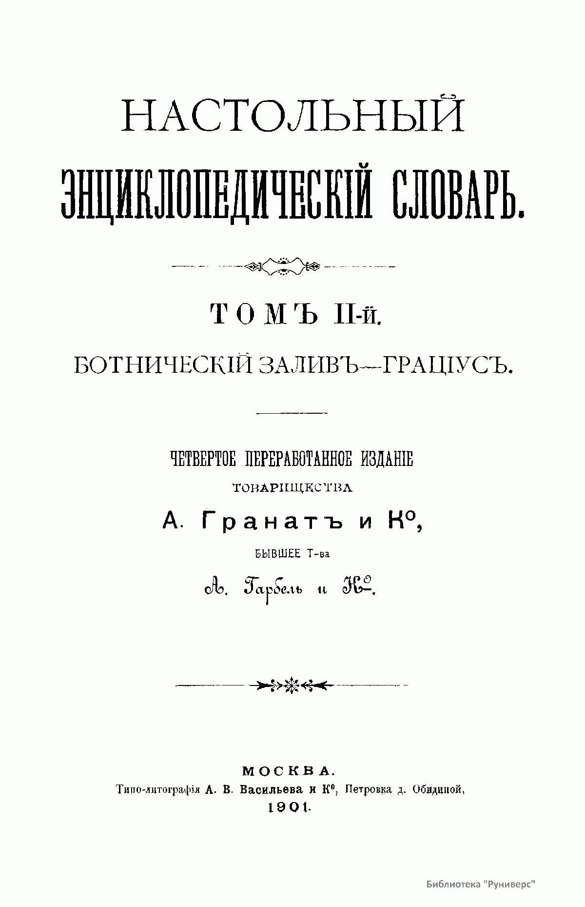 Настольный энциклопедическiй словарь. Томъ II-й. Ботаническiй заливъ-Грацiусъ