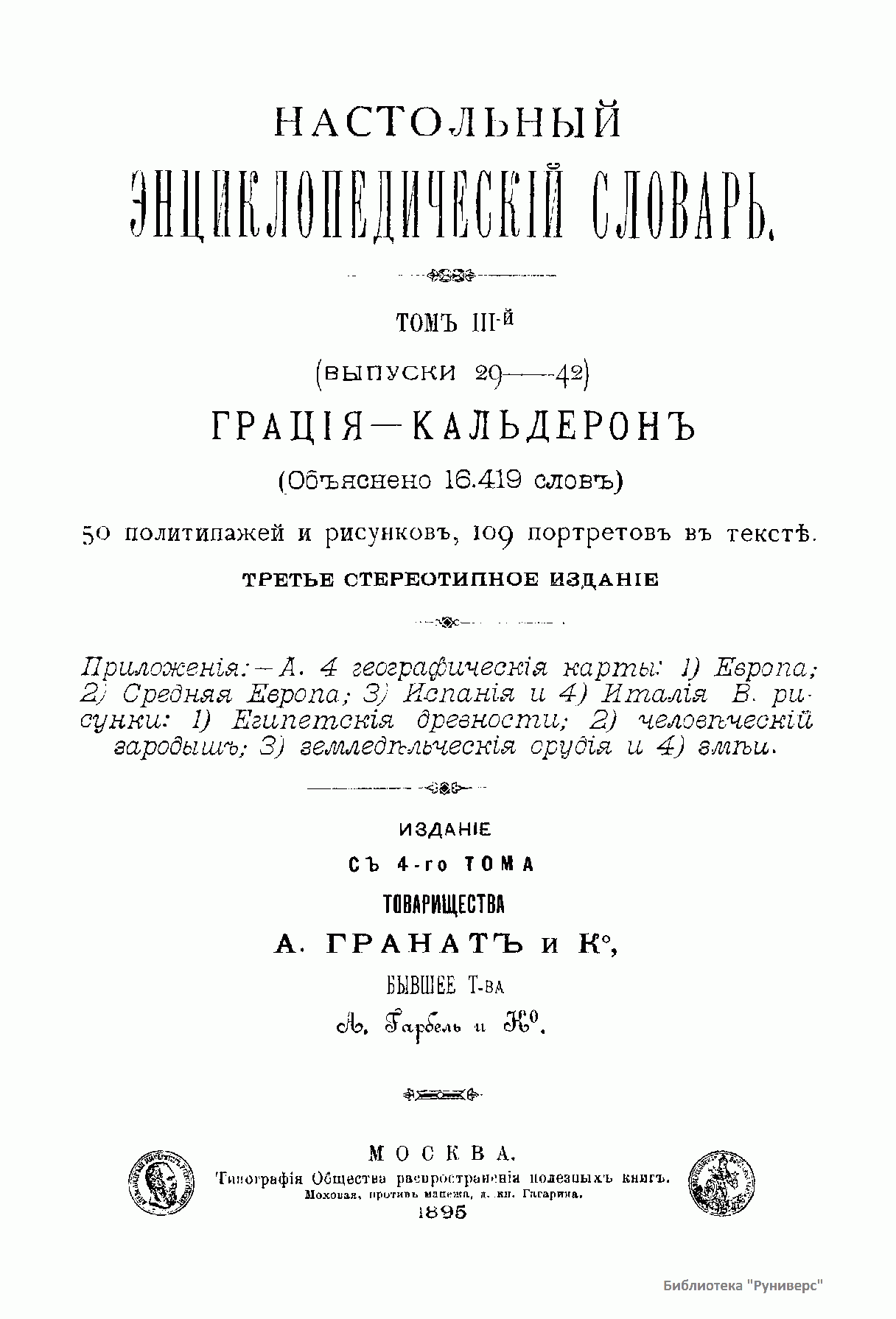 Настольный энциклопедическiй словарь. Томъ III-й. Грацiя-Кальдеронъ
