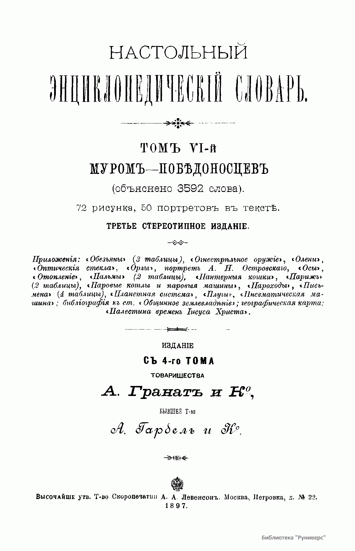 Настольный энциклопедическiй словарь. Томъ VI-й. Муромъ-Побѣдоносцевъ