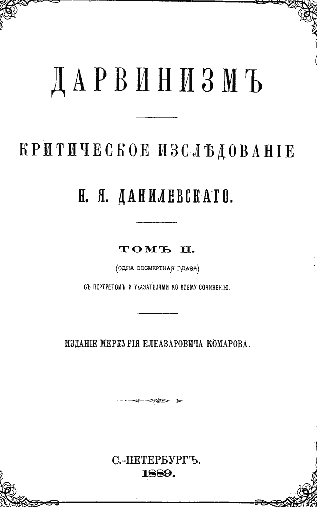 Публицист, социолог, идеолог панславизма в своем трехтомном труде "Дарвинизм. Критическое исследование" (1885 г.) Н.Я. Данилевский собрал воедино возражения, высказанные против дарвинизма за четверть века его существования, и изложил собственные взгляды на эволюцию органических форм.