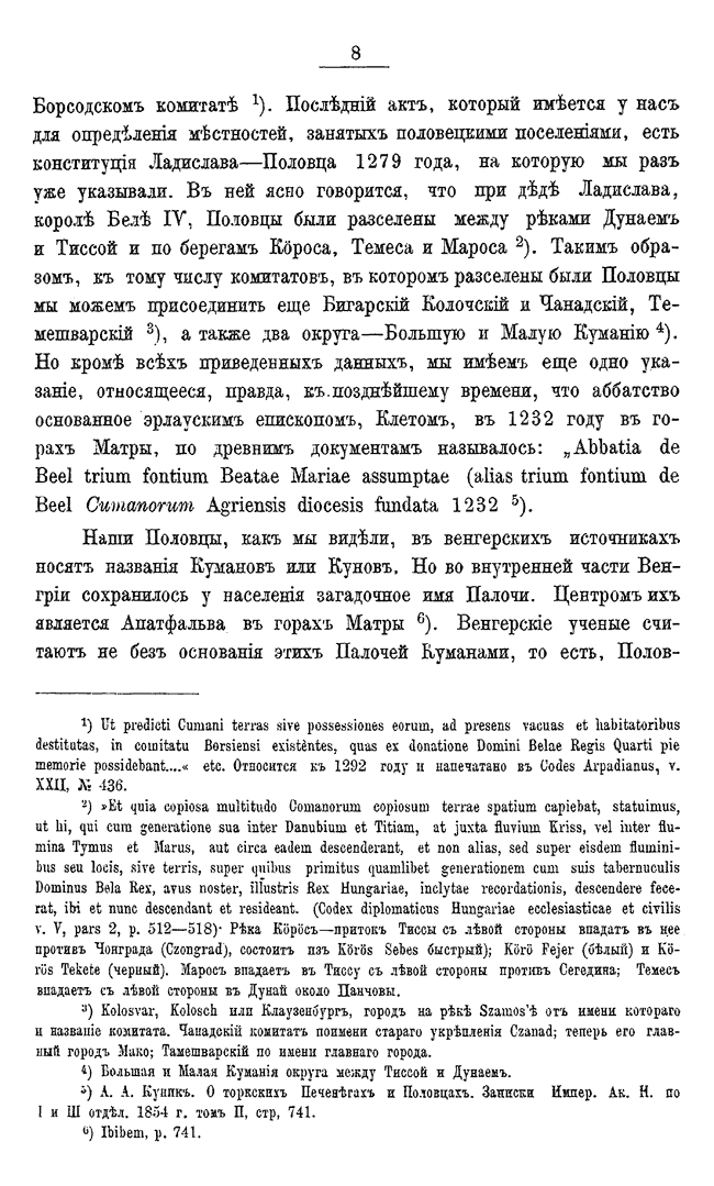 Краткий исследовательская работа, которую автор первоначально задумывал как приложение к своему исследованию «Печенеги, торки и половцы до нашествия татар», 1884. В брошюре собраны редкие сведения о переселении и жизни половецких кочевников в Венгрии.