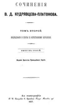 Сочинения В.Д. Кудрявцева-Платонова. Том II. Выпуск 3.
