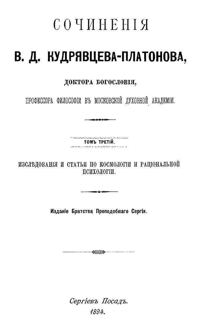 Сочинения В.Д. Кудрявцева-Платонова. Том III. Выпуск 2.