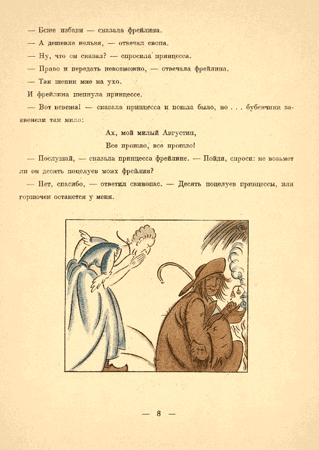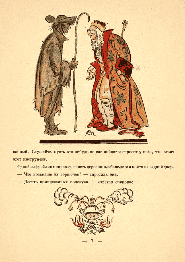 , указывают годы издания 1921 — 1922, так как известны три варианта этого издания, трудно различимые даже для специалистов. В процессе работы художник демонстрирует своё мастерство иллюстратора, создавая целостный образ книги. Она мыслится как органичное сочетание всех графических элементов, подчиненных единому замыслу, единому эмоциональному настрою. От страничных иллюстраций, прорисовок буквиц до выбора шрифта и прорисовки виньетки - во всем оформлении книги мы можем видеть гармоничность решений и уравновешенность авторского стиля. «Свинопас» — одна из наиболее популярных сказок Андерсена, которая выдержала не один десяток переизданий на протяжении нескольких столетий.