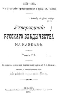 Фундаментальный исторический труд, содержащий историю кавказских войн, а также историю развития гражданского управления Кавказом.