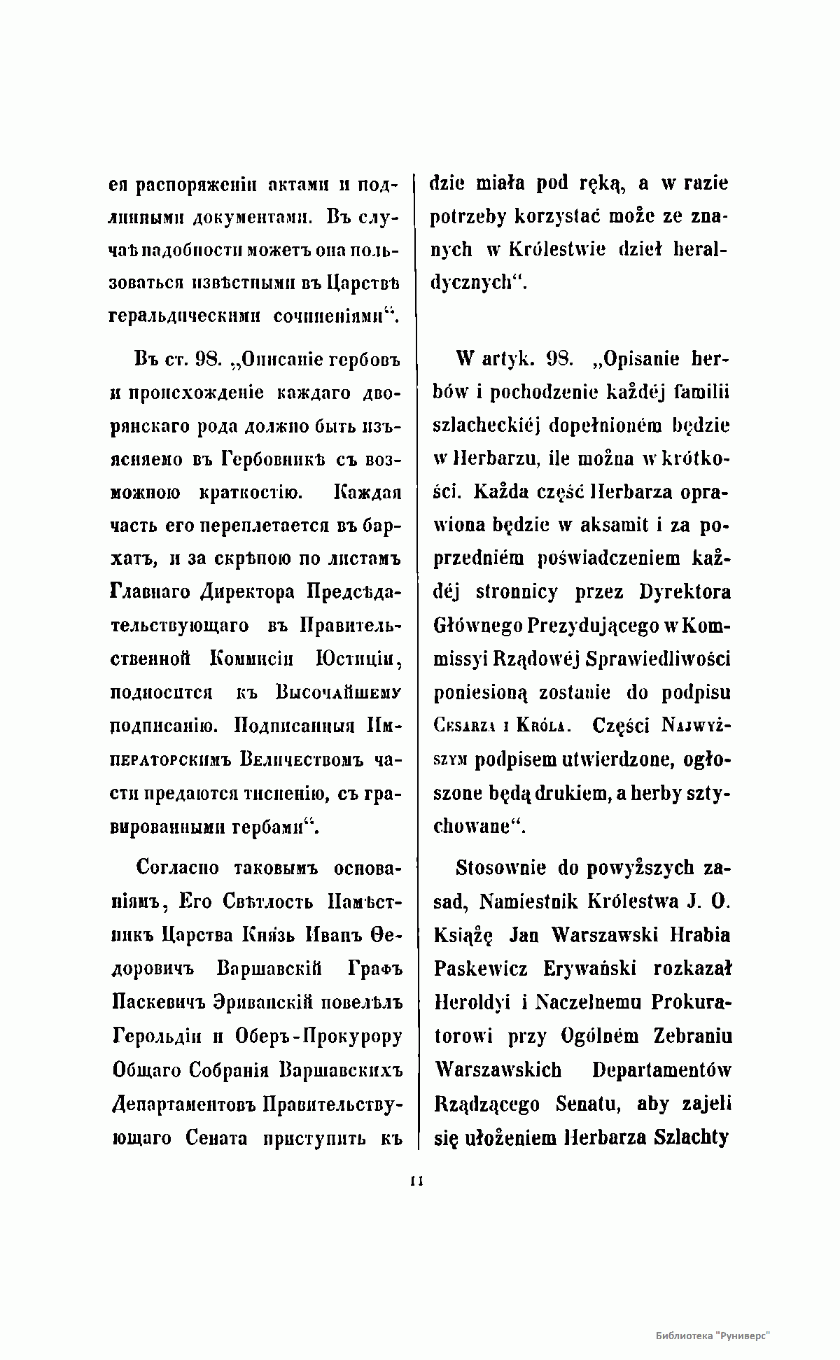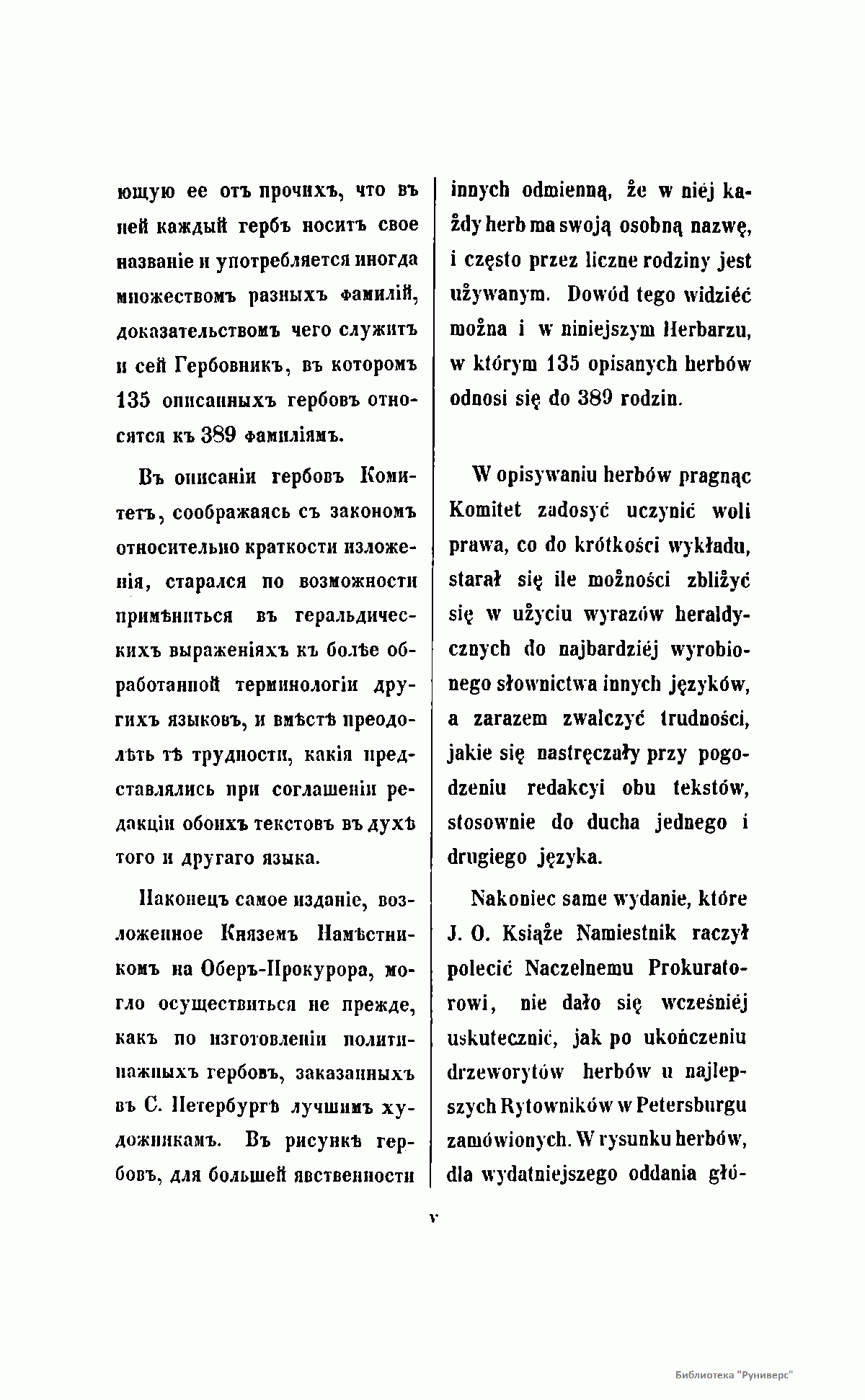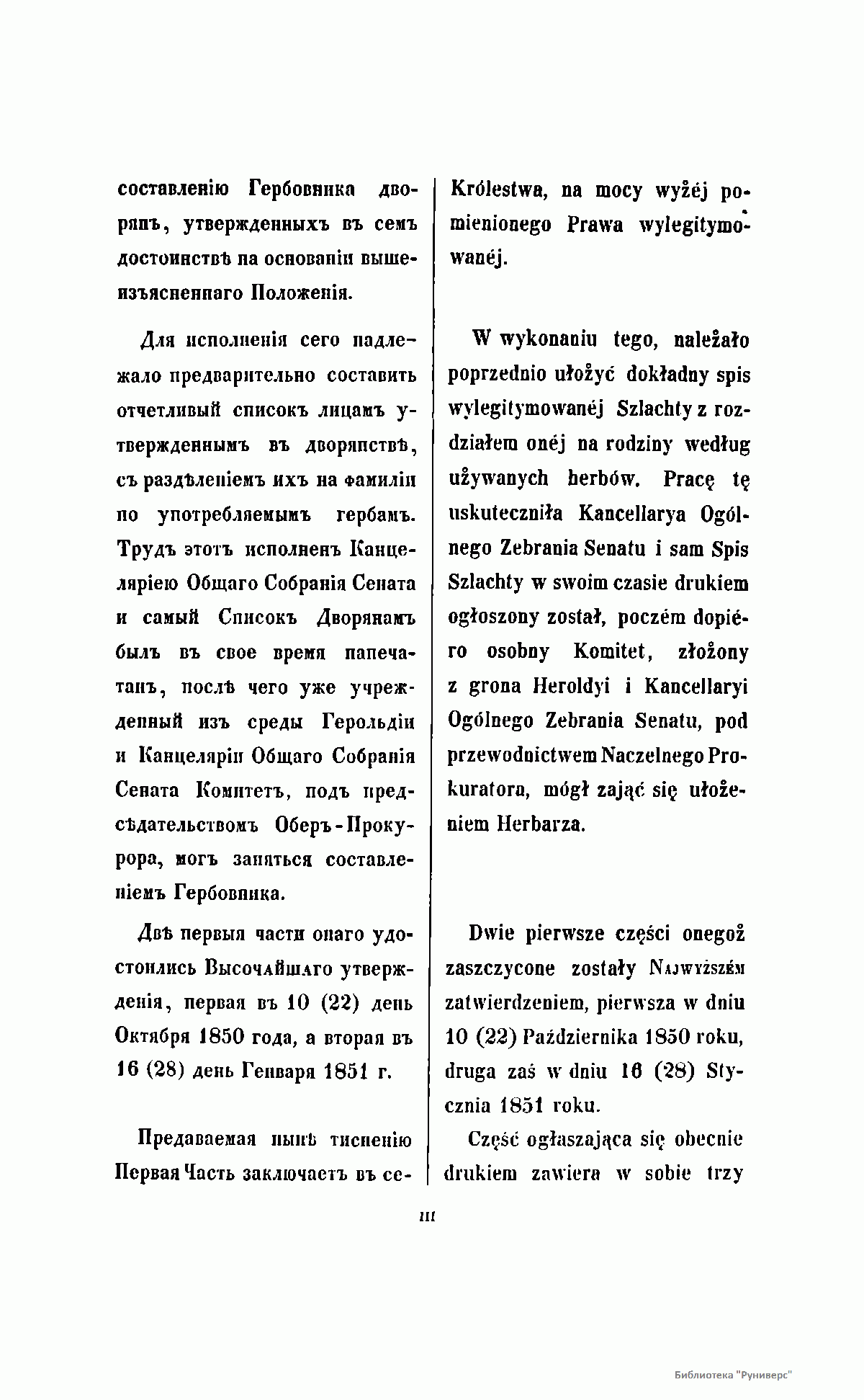 Положением о дворянстве в Царстве Польском, высочайше утвержденном 25 июня 1836 г., а также в соответствии с 65-й статьей этого Положения, составление Гербовника польского дворянства было возложено на Герольдию. В результате кропотливой и длительной работы к 1850 году было разработано и описано 135 гербов, относящихся к 389 польским фамилиям. Все польское дворянство было распределено на три части: титулованные дворянские семьи, фамилии, получившие дворянство до 1836 года и, наконец, причисленные к благородному сословию семьи после 1836 года. Среди польской знати особо выделены два княжеских и свыше ста графских родов. Издание снабжено цветными иллюстрациями гербов и их подробным описанием. Текст описаний опубликован одновременно на русском и польском языках.