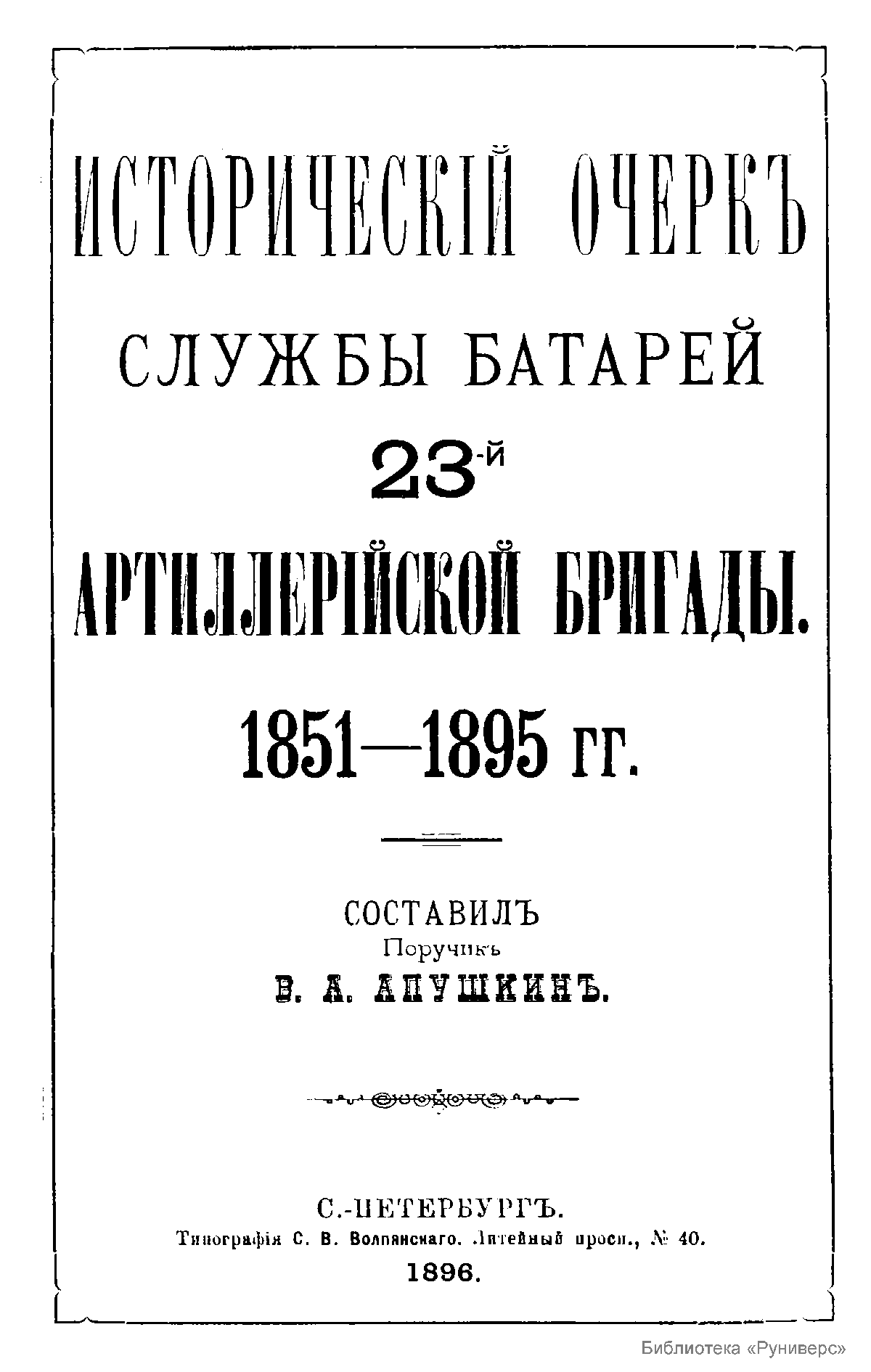Историческiй очеркъ службы батарей 23-й артиллерiйской бригады 1851-1895 гг