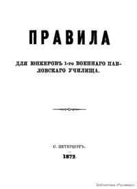 Правила для юнкеровъ 1-го военнаго Павловскаго училища