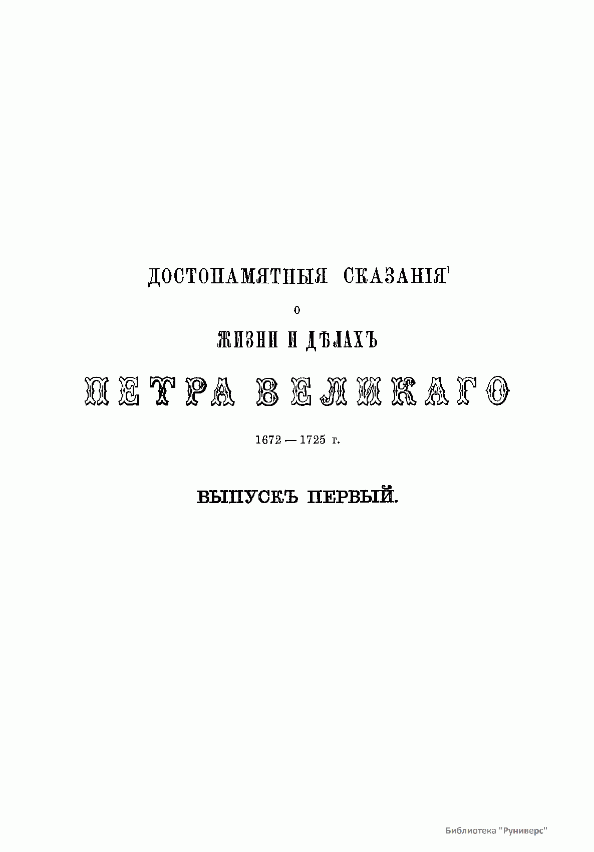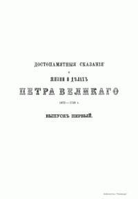 Достопамятные сказания жизни и делах Петра Великого 1672-1725 г. (Двухсотлетняя годовщина дня рождения Петра Великого. 1672-1872)