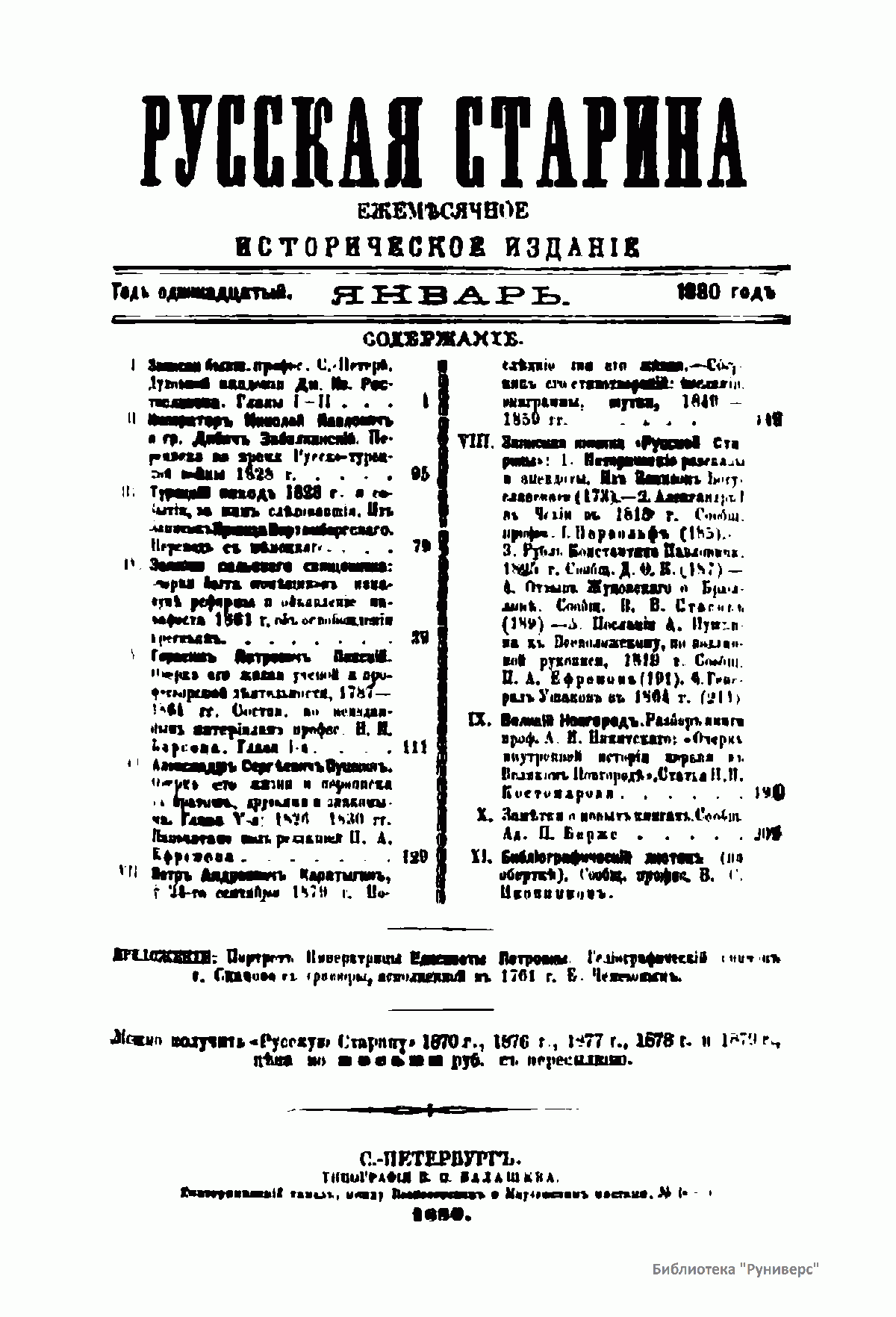 Русская старина. Томъ XXVII. 1880. Выпуски 1-4