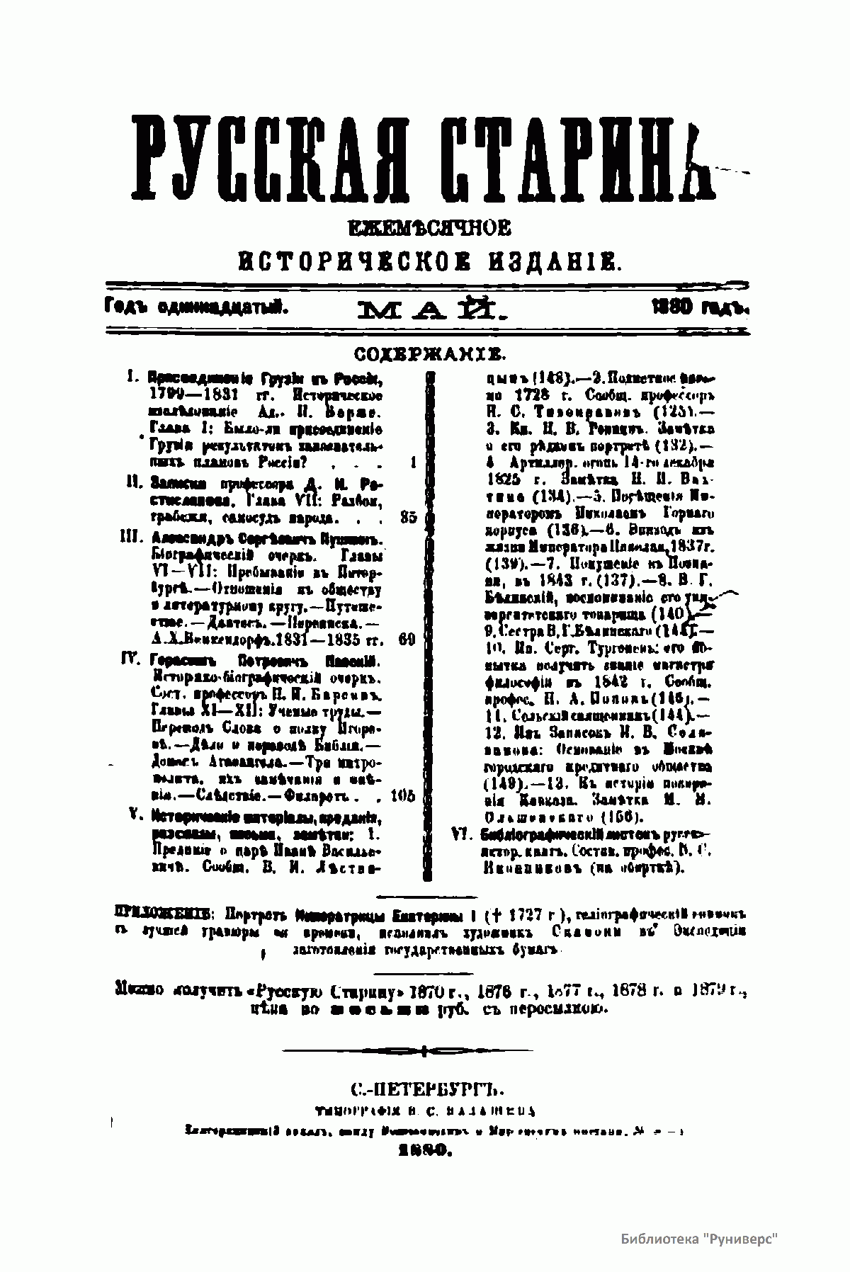 Русская старина. Том XXVIII. 1880. Выпуски 5-8