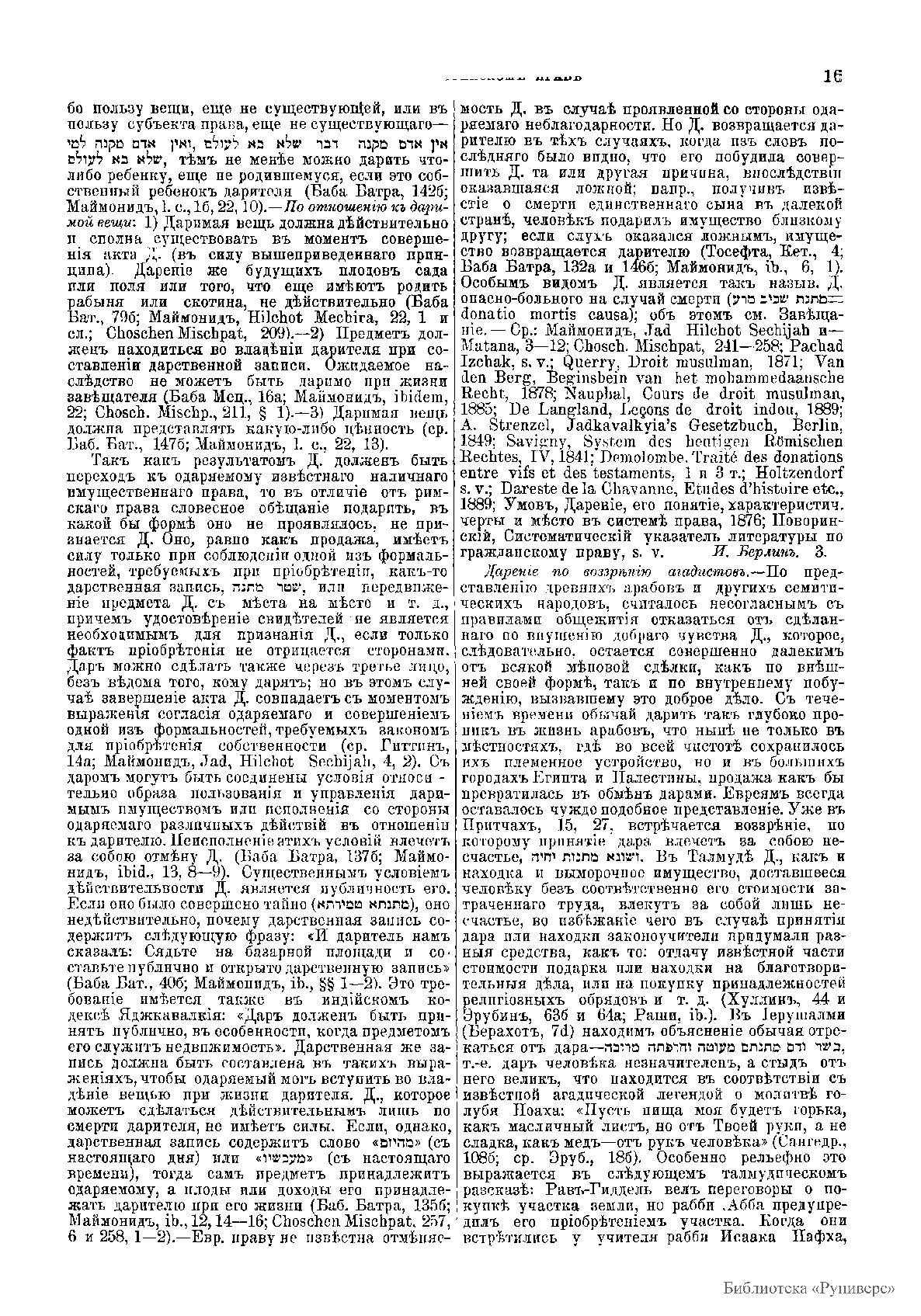 Первый крупный энциклопедический свод знаний о еврействе на русском языке. Энциклопедия была опубликована в 1908 – 1913 гг. в шестнадцати томах в Санкт-Петербурге «Обществом для научных еврейских изданий» и «Издательством Брокгауз – Ефрон». Основой и образцом для нее послужила вышедшая несколько годами ранее двенадцатитомная «The Jewish Encyclopedia» (London; New York, 1901 – 1906). Однако ее материал был существенно дополнен и расширен авторами «Еврейской Энциклопедии Брокгауза» во всем, что касалось истории, культуры и современного положения еврейских общин в Восточной Европе. В работе над «Еврейской энциклопедией Брокгауза» принимали участие виднейшие представители российской иудаики, гебраистики и востоковедения: А.Гаркави, Д. Гинцбург, Ю Гессен, С. Дубнов, И. Маркон, Н. Переферкович. «Еврейская энциклопедия Брокгауза» до сих пор остается одним из важнейших источников справочной информации и статистических данных о почти шестимиллионном еврейском населении Российской империи начала XX в. И потому ее данные можно отнести к числу ценных источников сведений по социально-политической, этнической, культурно-религиозной истории и исторической демографии России и сопредельных ей стран.