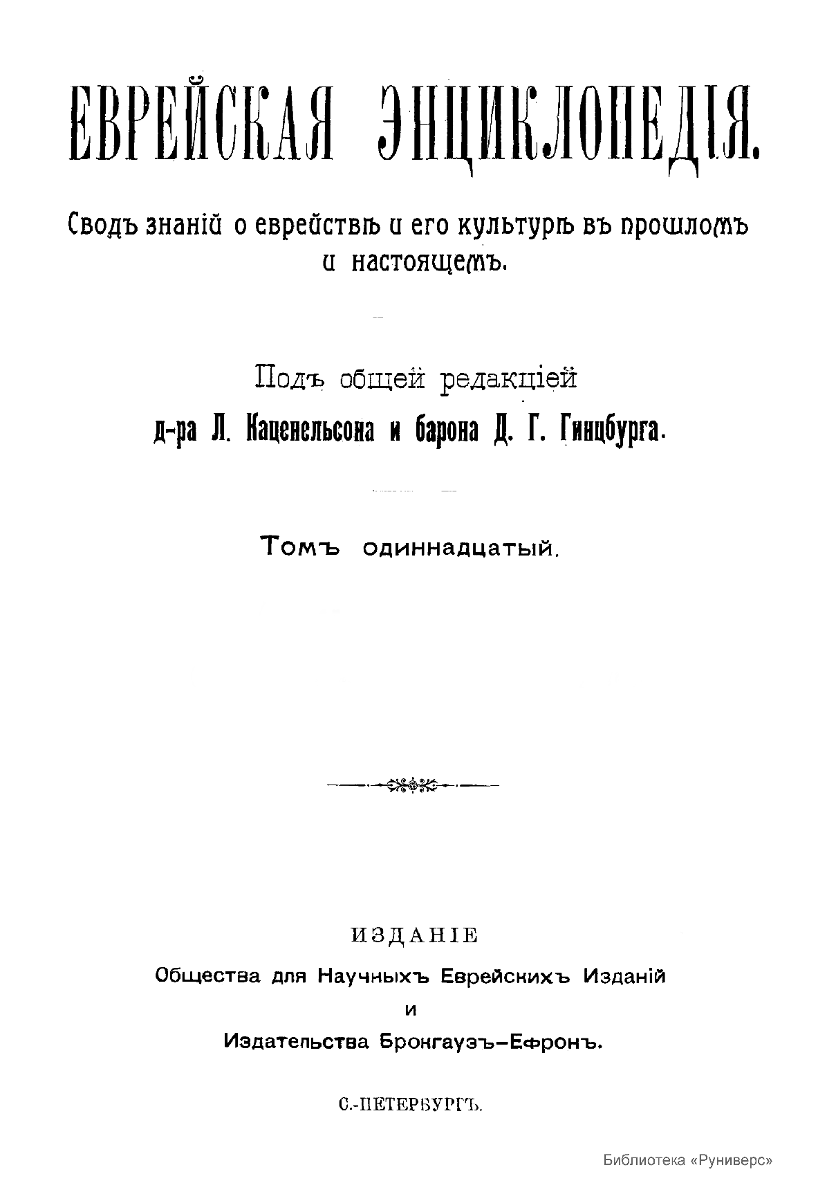 Еврейская энциклопедiя. Томъ одиннадцатый