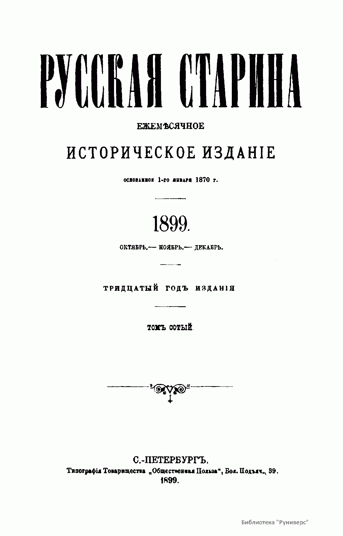 Русская старина. Томъ C. 1899. Выпуски 10-12